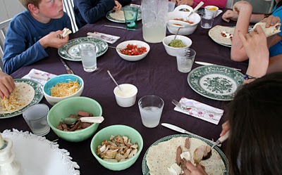 Tilbake til fisken. Vi var mange til middag, både barn og voksne. Og da været var sånn passe overskyet, brukte vi en del tid på kjøkkenet for å forberede en meksikansk fiesta. Menyen ble følgende: