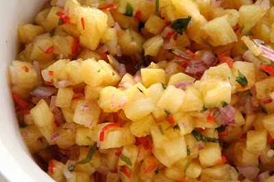 Fjern skallet og kjernen i ananasen og skjær kjøttet opp i fine terninger. Finhakk chillien (med eller uten frø). Smak på chillien for å få en følelse av hvor sterk den er. Hakk løk og koriander. Riv skallet på limen og press ut saften. Bland ananasen, noe chilli, løken, koriander, lime skall og noe av limesaften. Smak. Ha opp i mer chilli eller limesaft hvis det trengs. Smak til med salt og evt. tabasco. Server med en gang eller oppbevar kjølig i opptil 3 timer.