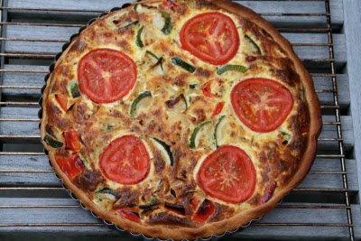 Bland melk, kremfløte og egg sammen og tilsett litt salt og pepper. Hent paideigen din. Strø revet ost på bunnen og fordel så grønnsaken dine over. Hell over melk/egg blandingen. Skjær tomaten i skiver og legg de rundt på toppen av paien. Strø litt mer Herbes de Provences på toppen. Sett paien i ovnen og stek i ca. 30 minutter. Server med en grønn salat og hvis ikke det er mandag, god, kjølig hvitvin….