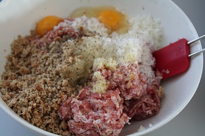 Ha alle kjøttbolle ingrediensene i en stor skål.