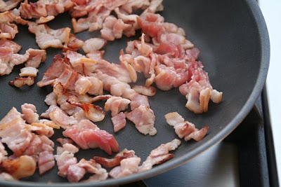 Skjær bacon i strimler og stek til sprøtt.
