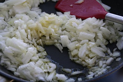 Ha litt olivenolje i stekepannen sammen med fettet fra bacon og stek løken til myk på middelsvarme. Hell løken i tomatsausen når den er ferdigstekt.