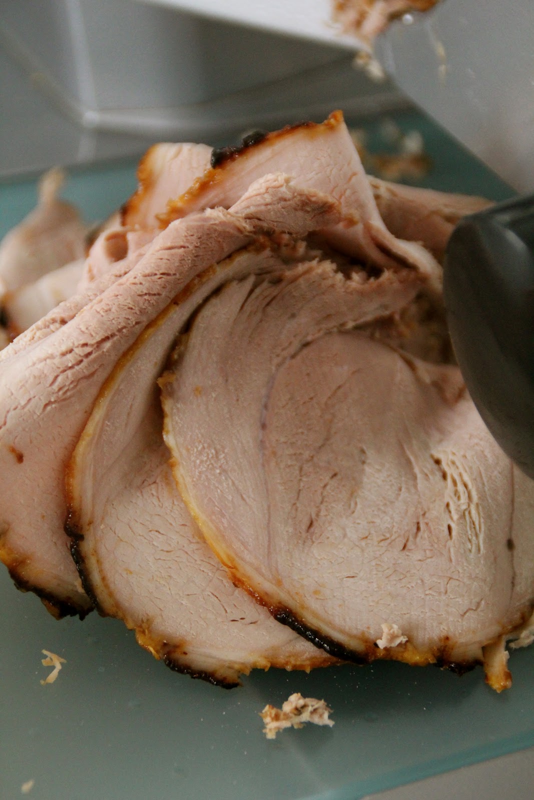 Dagen den skulle serveres ble den skivet – og jeg takker så mye for lånet av en oppskjærsmaskin som gjorde jobben så mye lettere og penere enn det jeg kunne gjort for hånd. Jeg vurderer virkelig å kjøpe min egen…