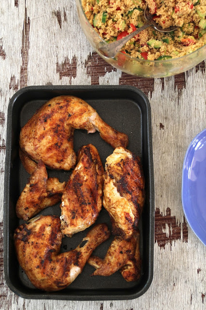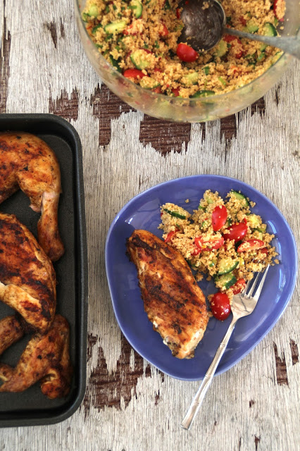Spicy grillet kylling og couscous salat med friske grønnsaker