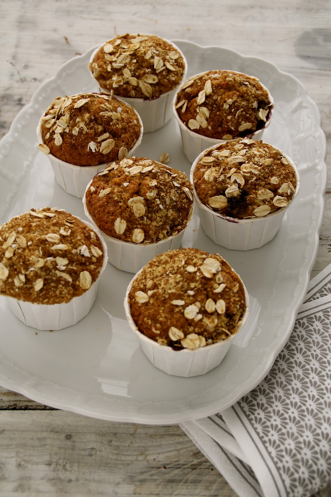 Nå har jeg laget muffins’ene dine men byttet ut blåbær med eplebiter og hadde litt kanel i toppingen. Men jeg skjønner ikke at du kan ha fått 12 muffins ut av den oppskriften? Lurer på om mine former er større en dine, samme sort riktignok, men jeg fikk bare 7 muffins ut av oppskriften…