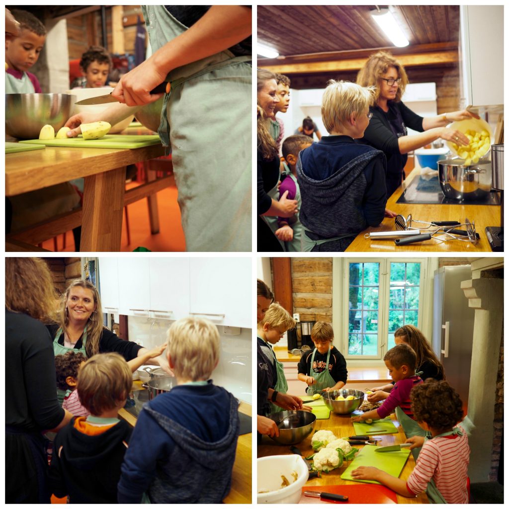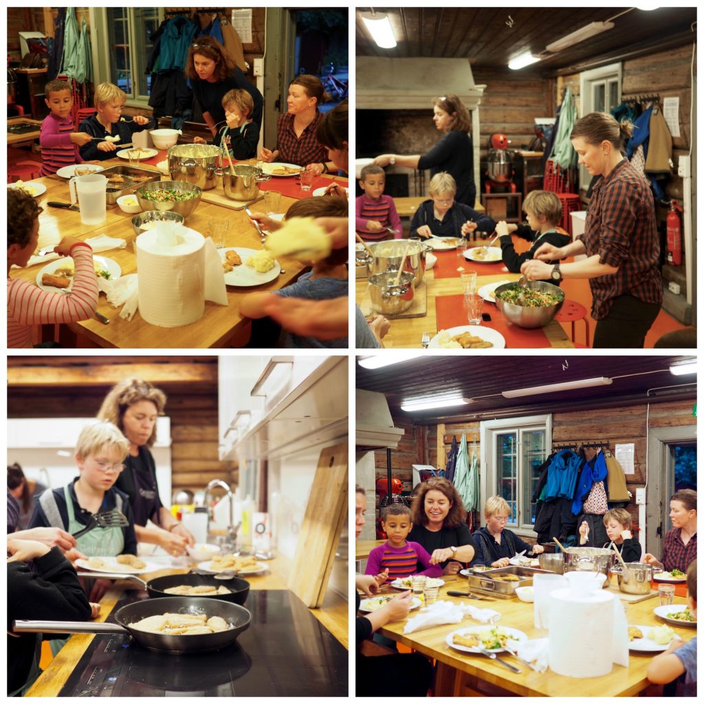 Hver tirsdag har Maj-Britt holdt kurs på Geitmyra der barn og foreldre inviteres til matlaging med lav terskel og mye hygge. Og jammen ble det ikke mye hygge (og matlaging). 5 barn og 3 foreldre kom tusslende inn den tirsdagen og i løpet av de neste to timene fikk vi laget fiskepinner av torsk, sei og laks, kålsalat, potet- og blomkålstappe og et par dipper.